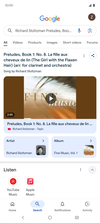 Press the music icon and wait for the search results.