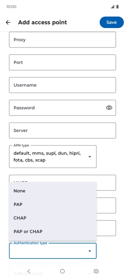 Press the drop down list below "APN type".