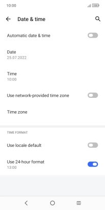 Press the indicator next to "Automatic date & time" to turn on the function.