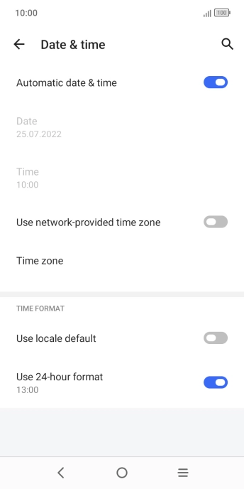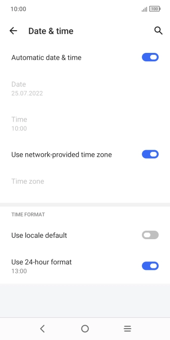 Press the indicator next to "Use network-provided time zone" to turn on the function.