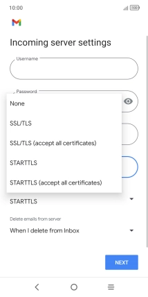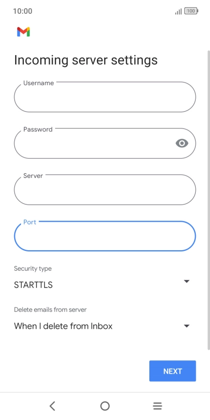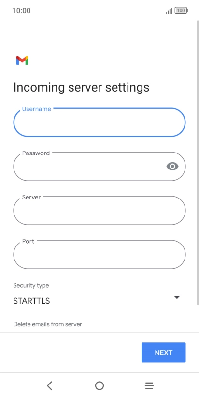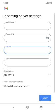 Press the field below "Server" and key in the name of your email provider's incoming server.