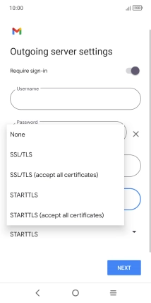 Press the field below "Username" and key in the username for your email the email provider's outgoing server.