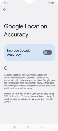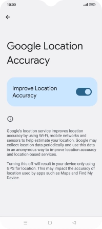 If you press the indicator next to "Improve Location Accuracy" to turn off the function, your phone can find your exact position using the GPS satellites but it may take longer as there is no access to supplementary information from the mobile network or nearby Wi-Fi networks.