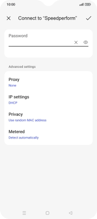 Key in the password for the Wi-Fi network and press the confirm icon.