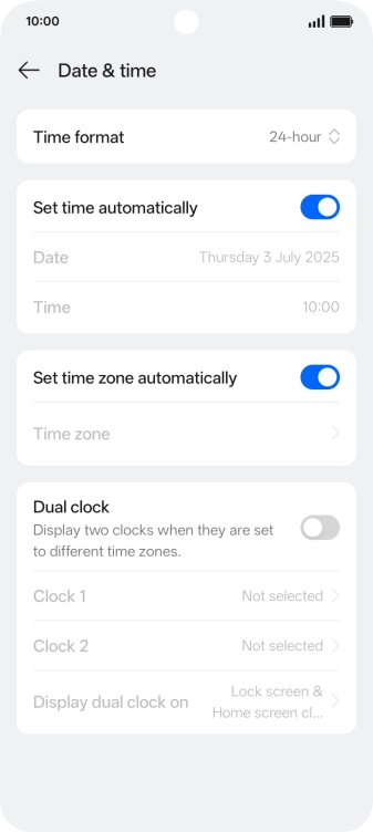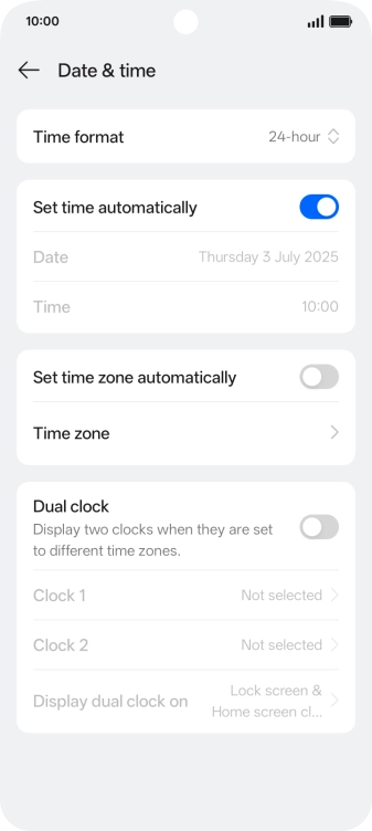 Press the indicator next to "Set time zone automatically" to turn on the function.