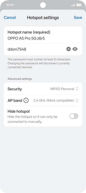 Press WPA3-Personal to password protect your Wi-Fi hotspot.