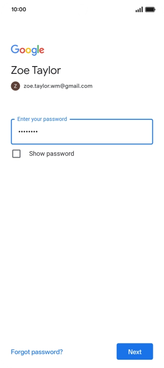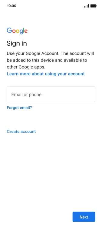 If you don't have a Google account, press Create account and follow the instructions on the screen to create an account.