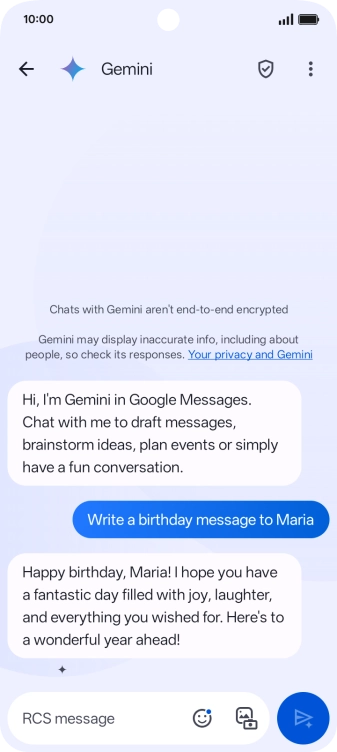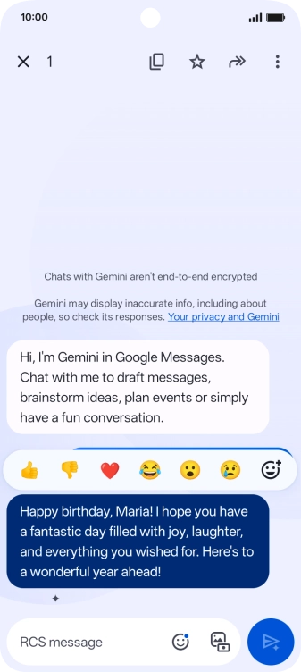 Press and hold the text suggestion from Gemini. Follow the instructions on the screen to use the text suggestion.
