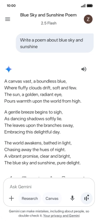 You can use Gemini to generate text, create various creative content and answer your questions in an informative way. Here you can see some examples of Gemini usage. To use most of the Gemini functions, you need to activate your Google account on your phone and set up your phone for internet.