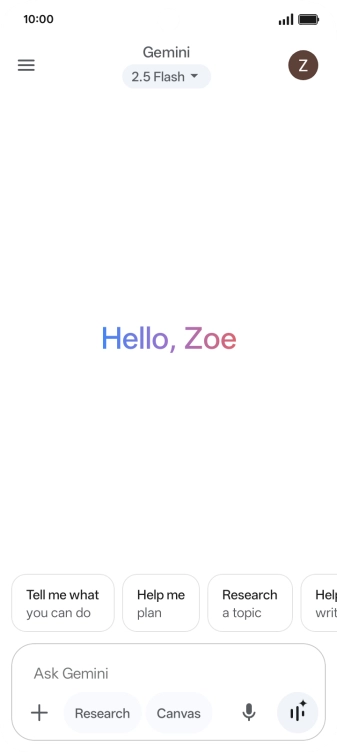 Follow the instructions on the screen to type or speak the required question. You can also attach pictures or documents and ask questions to them.