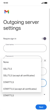 Press the field below "Username" and key in the username for your email the email provider's outgoing server.