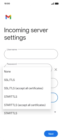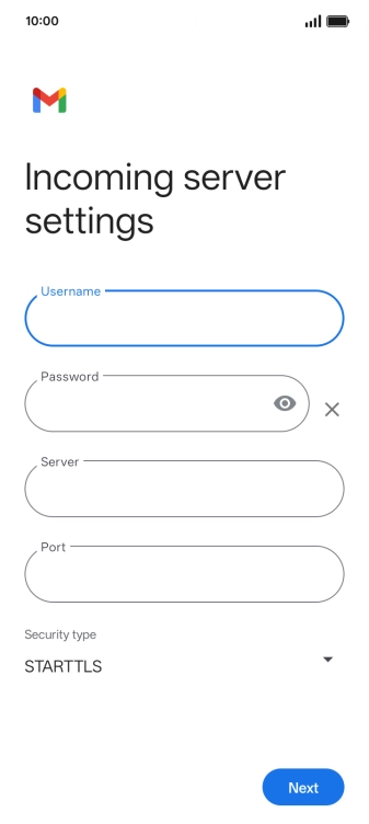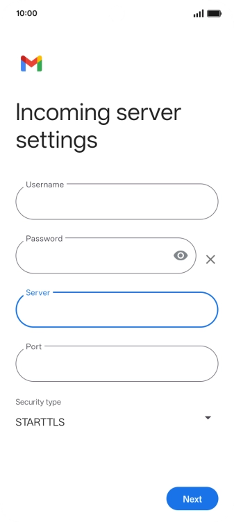 Press the field below "Server" and key in the name of your email provider's incoming server.
