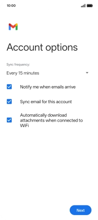 If this screen is displayed, you email account has been recognised and set up automatically. Follow the instructions on the screen to key in more information and finish setting up your phone.