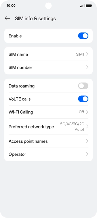 Press the name of the SIM.
