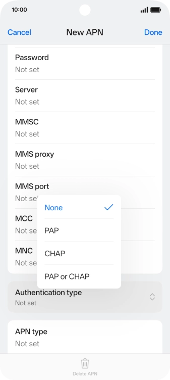 10. 10. Enter APN type