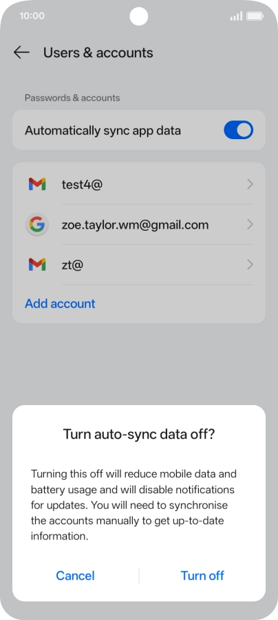 2 Turn automatic synchronisation of content on or off
