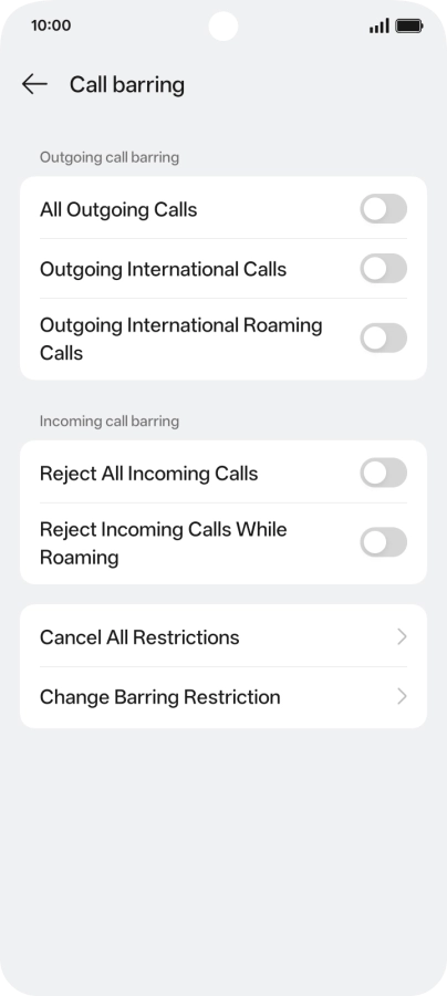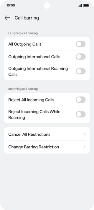 2 Turn call barring on or off