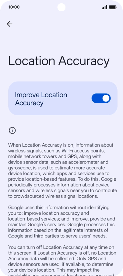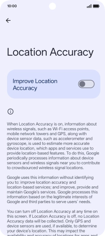 If you press the indicator next to "Improve Location Accuracy" to turn off the function, your phone can find your exact position using the GPS satellites but it may take longer as there is no access to supplementary information from the mobile network or nearby Wi-Fi networks.