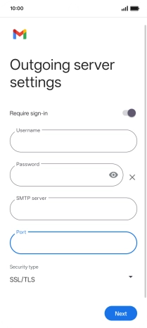 Press the field below "SMTP server" and key in the name of your email provider's outgoing server.