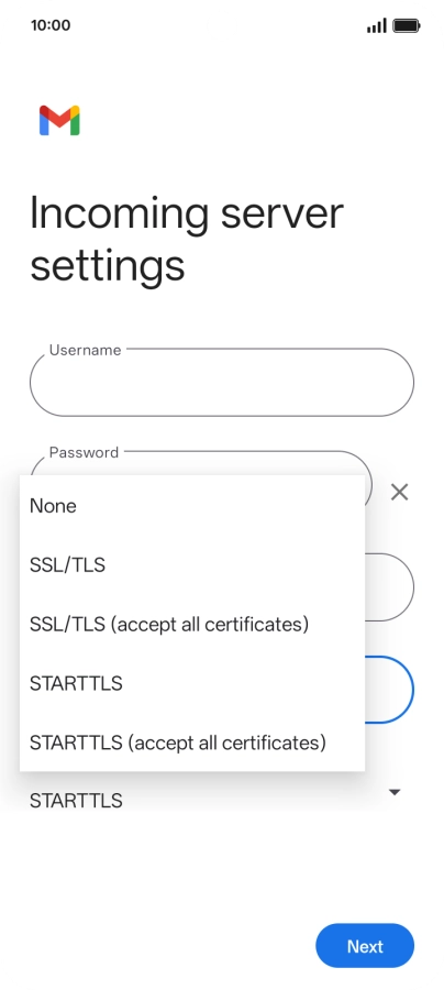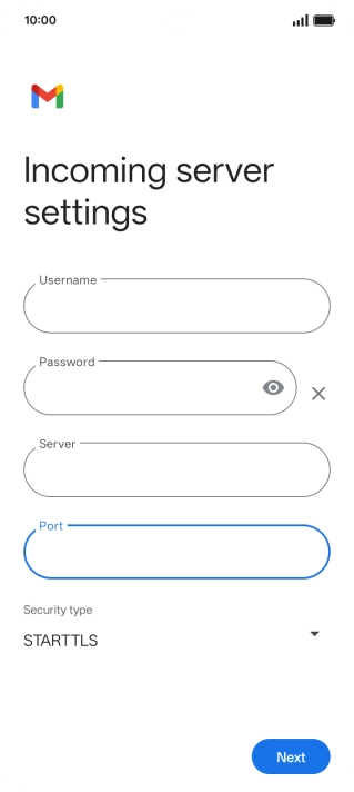 Press the field below "Server" and key in the name of your email provider's incoming server.