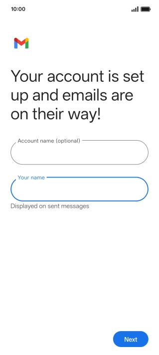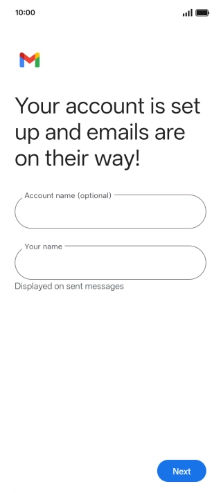 If this screen is displayed, you email account has been recognised and set up automatically. Follow the instructions on the screen to key in more information and finish setting up your phone.