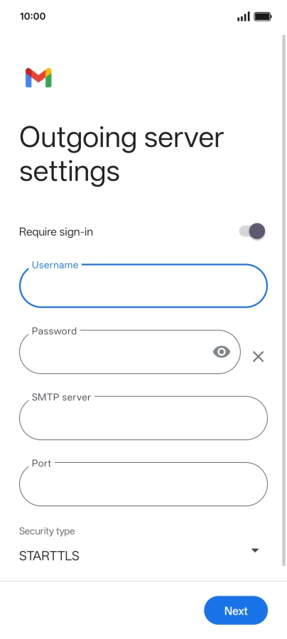 Press the field below "Username" and key in the username for your email the email provider's outgoing server.