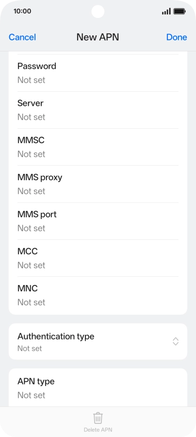 10 Enter APN type
