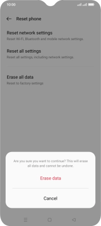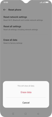 Press Erase data. Wait a moment while the factory default settings are restored. Follow the instructions on the screen to set up your phone and prepare it for use.