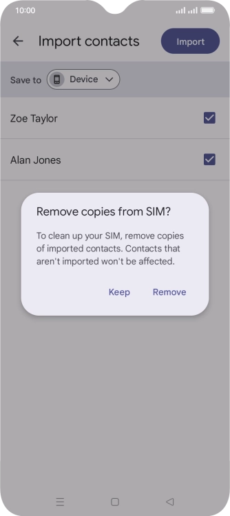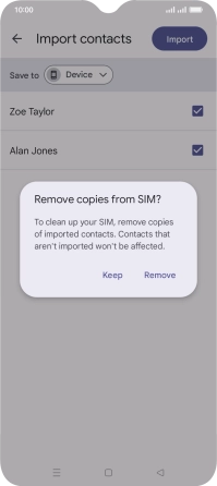 If you want to delete the existing contacts from your SIM, press Remove.