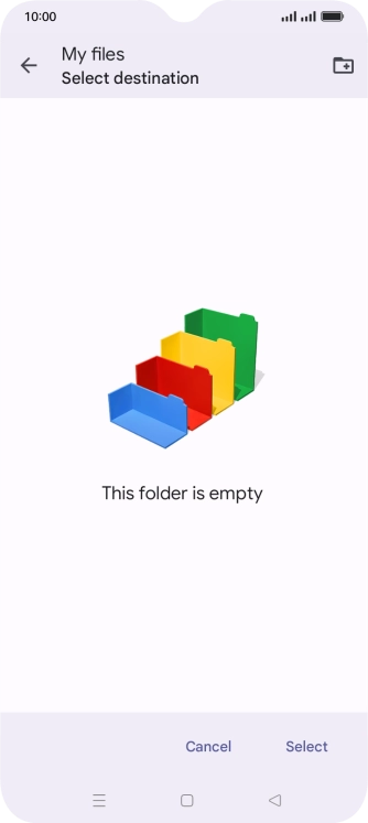 To create a new folder, press the new folder icon and follow the instructions on the screen to create a new folder.