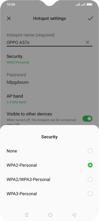 Press WPA3-Personal to password protect your Wi-Fi hotspot.