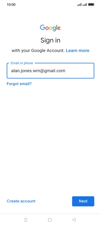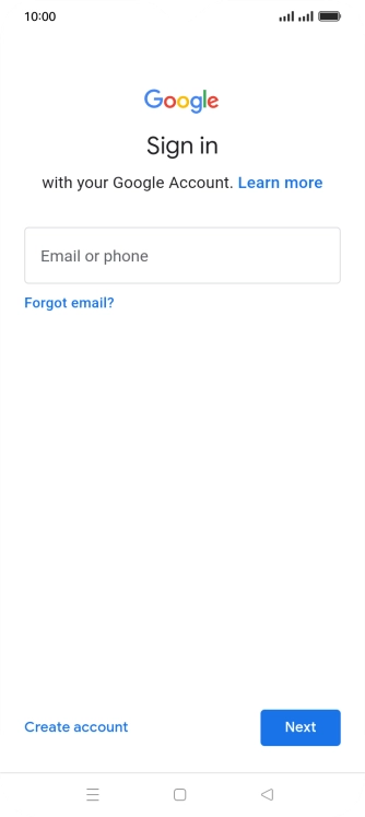If you don't have a Google account, press Create account and follow the instructions on the screen to create an account.