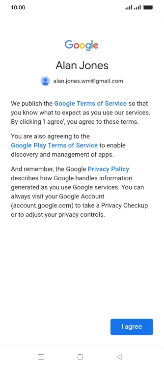Press I agree and follow the instructions on the screen to select settings for your Google account.