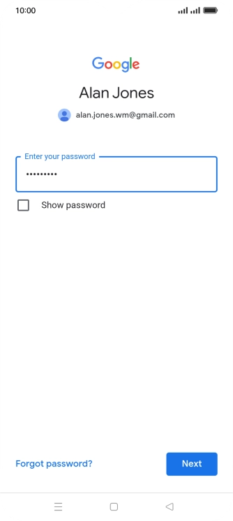 Press the field below "Enter your password" and key in the password for your Google account.