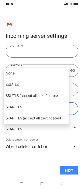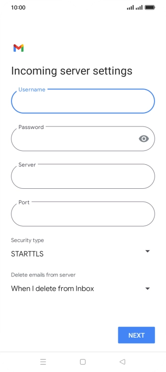 Press the field below "Server" and key in the name of your email provider's incoming server.