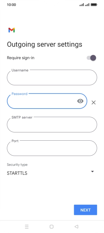 Press the field below "Password" and key in the password for your email provider's outgoing server.