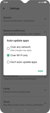 To turn on automatic update of apps using Wi-Fi, press Over Wi-Fi only.