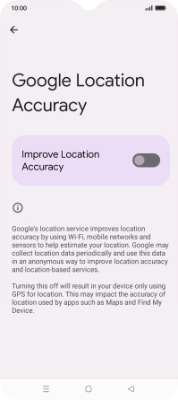 If you press the indicator next to "Improve Location Accuracy" to turn off the function, your phone can find your exact position using the GPS satellites but it may take longer as there is no access to supplementary information from the mobile network or nearby Wi-Fi networks.