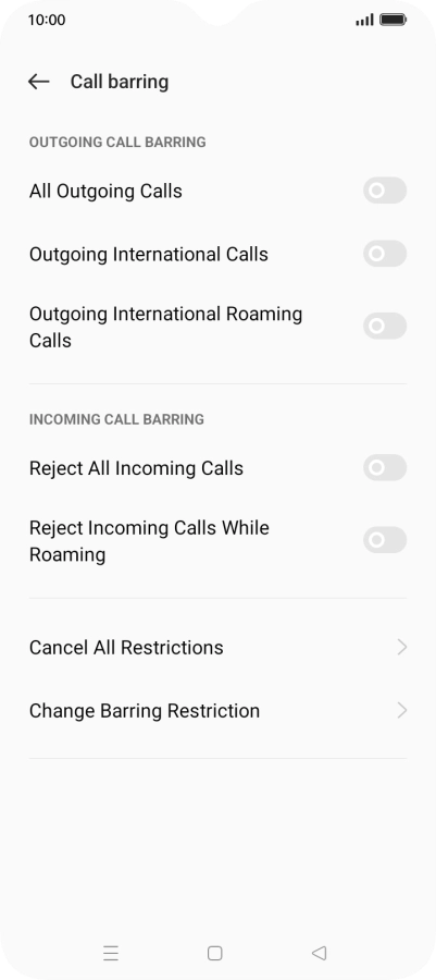 Press the required barring type.