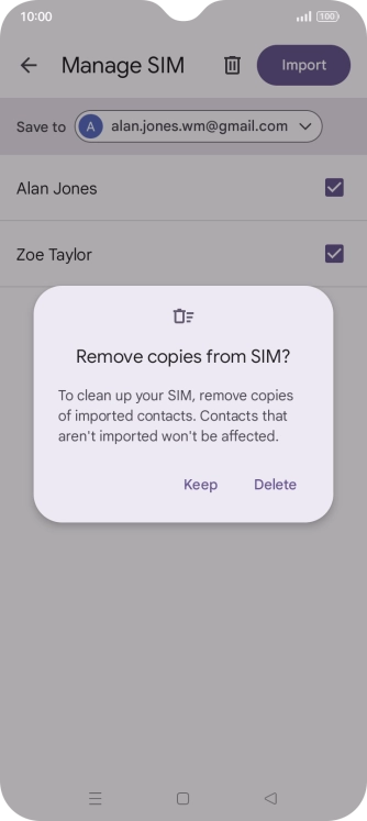 You can copy your contacts between your SIM and your Google account. This way, you won't lose your contacts if you change your SIM or phone. To copy contacts between your SIM and your Google account, you need to activate your Google account on your phone.