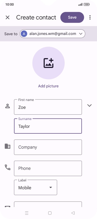Save new contact to your Google account