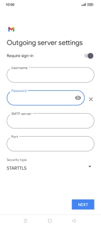 Press the field below "Username" and key in the username for your email the email provider's outgoing server.