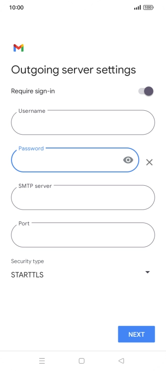 Press the field below "Password" and key in the password for your email provider's outgoing server.