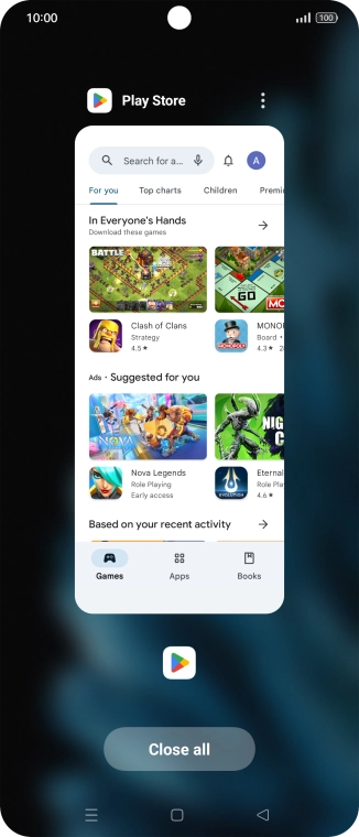 To end all running applications, press Close all.