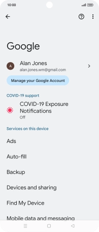 Select settings for Find My Device