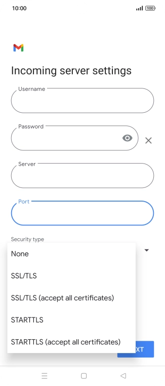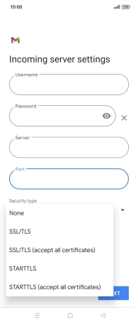 Press the field below "Server" and key in the name of your email provider's incoming server.
