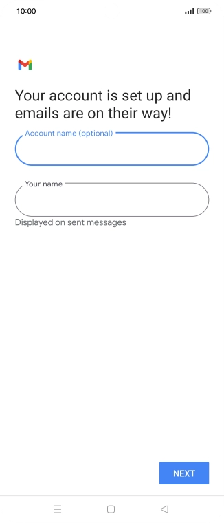 If this screen is displayed, you email account has been recognised and set up automatically. Follow the instructions on the screen to key in more information and finish setting up your phone.