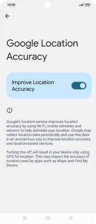 If you press the indicator next to "Improve Location Accuracy" to turn off the function, your phone can find your exact position using the GPS satellites but it may take longer as there is no access to supplementary information from the mobile network or nearby Wi-Fi networks.