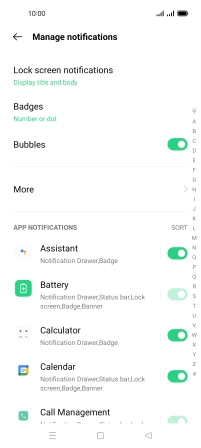 Press the indicators next to the required apps to turn the function on or off.