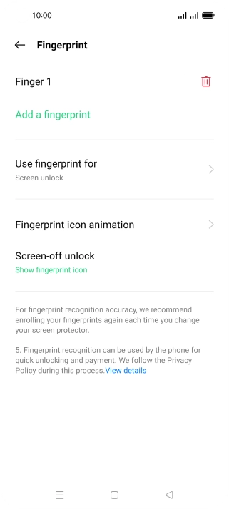 Follow the instructions on the screen to create the phone lock code using your fingerprint.